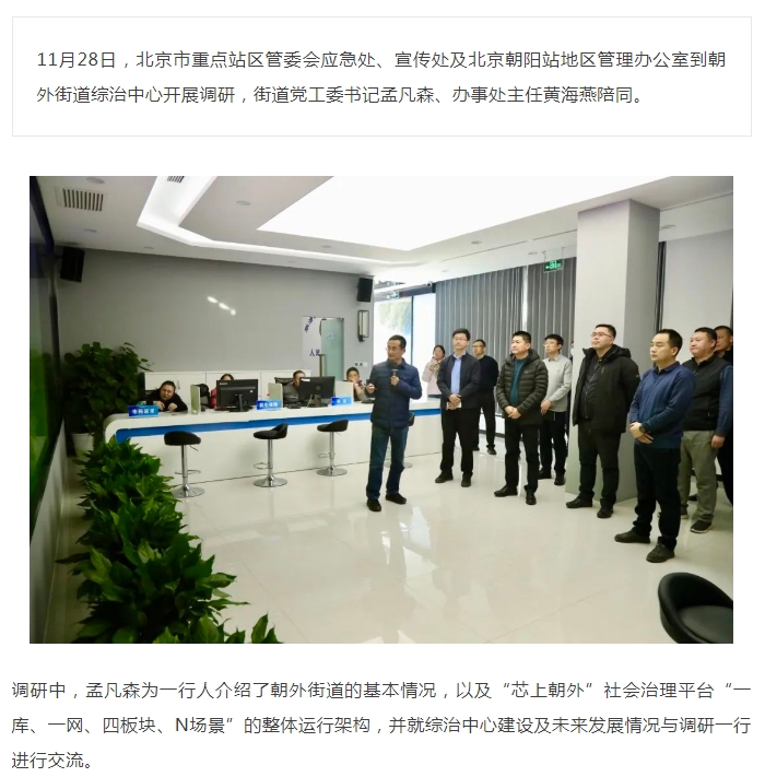 北京市重点站区管委会到朝外街道综治中心调研