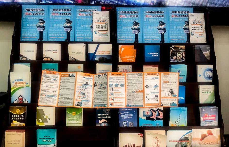 此外,街道便民服务中心还在大厅内的宣传架上展示了《网络安全宣传知识手册》和《给爸爸妈妈的爱心上网手册》,进一步为辖区居民普及网络安全知识,增强他们的网络安全意识。