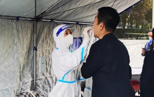 10月29日,和平街街道对机关干部、社区工作者、物业公司人员等重点行业、重点区域人员进行核酸检测,筑牢疫情防控屏障。