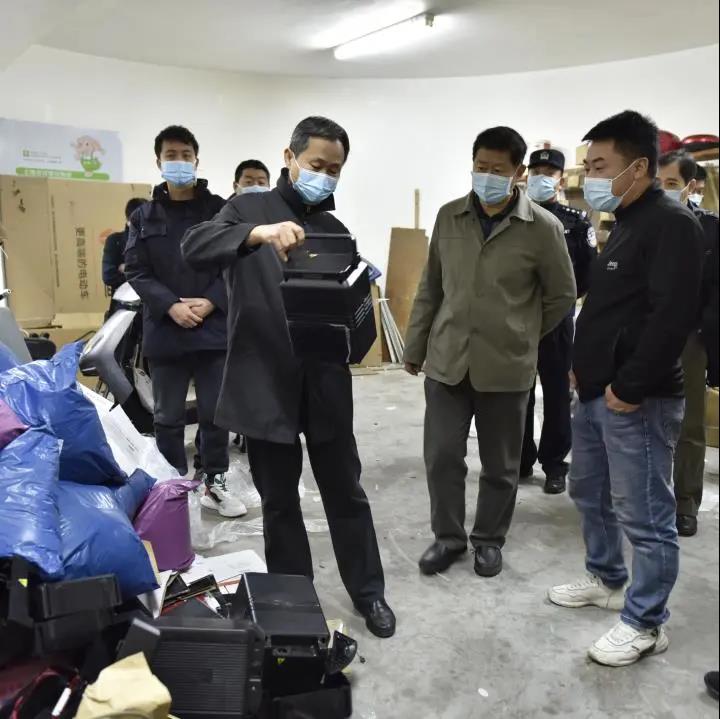 随后,在胜古北社区国典华园东区地下停车场,检查人员发现库房内存放了数十辆电动自行车,还有不少废旧纸箱、蓄电池壳和电池芯堆放一起,极易引发火灾风险。针对上述问题,街道武装部部长冯雷要求相关负责人按照市、区消防有关规定,立即清理电动自行车和纸箱、蓄电池等杂物,并强调严禁在地下室存放电动自行车。