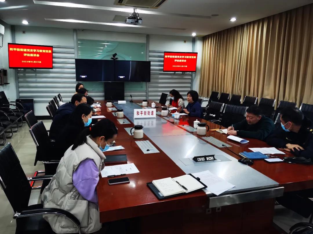 1月25日下午,和平街街道召开效果评估座谈会,来自机关各党支部的10名党员干部代表,围绕党史学习教育谈心得体会。党史学习教育区委第七指导组副组长王春艳等参加此次座谈。